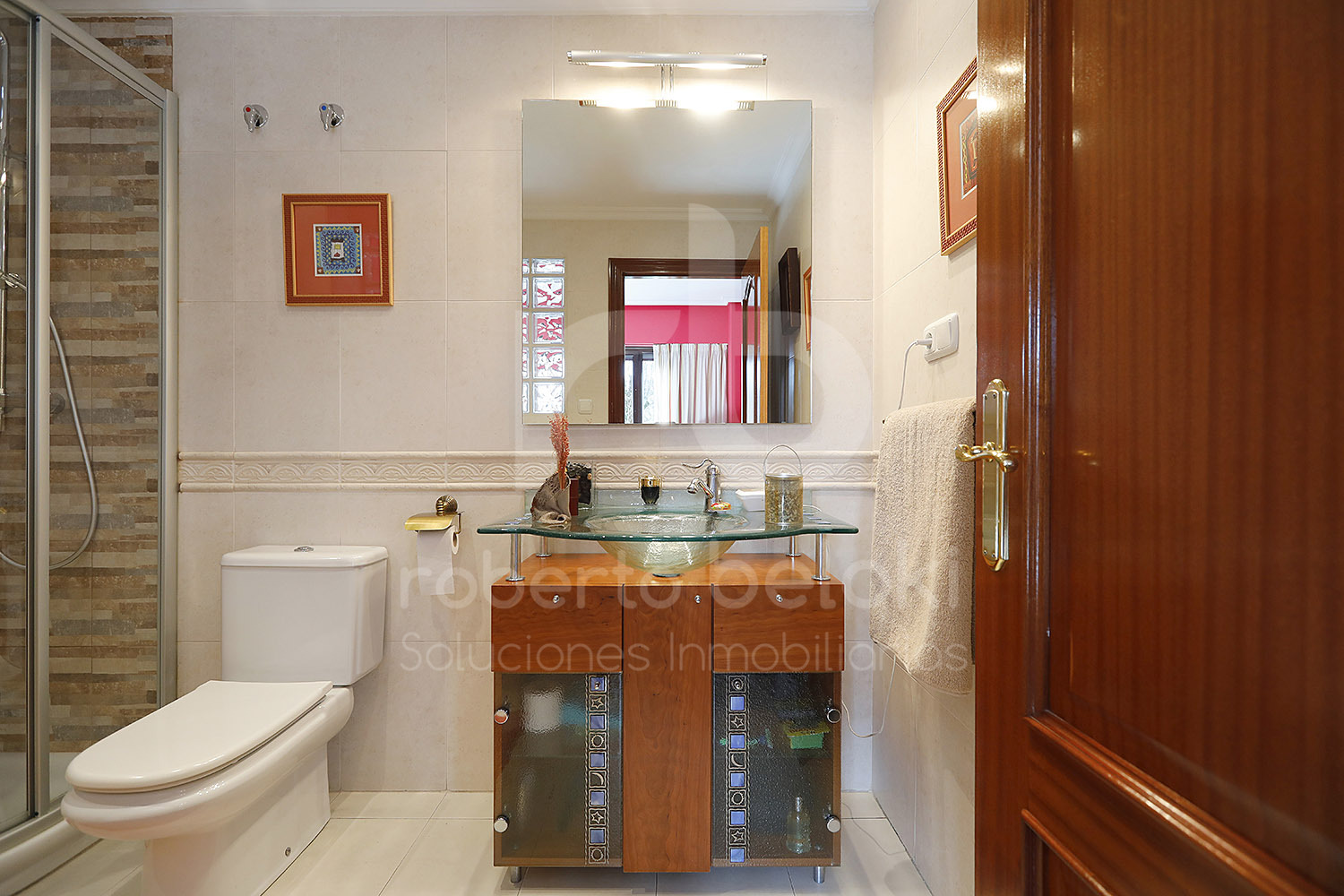 Descanso y privacidad en la zona de noche. En la primera planta, el espacio es la nota dominante. Encontrarás tres habitaciones dobles con armarios empotrados, todas exteriores y luminosas. Destaca la habitación principal: una suite privada con baño propio y balcón independiente, un rincón de paz absoluto. Un segundo baño completo da servicio al resto de la planta.