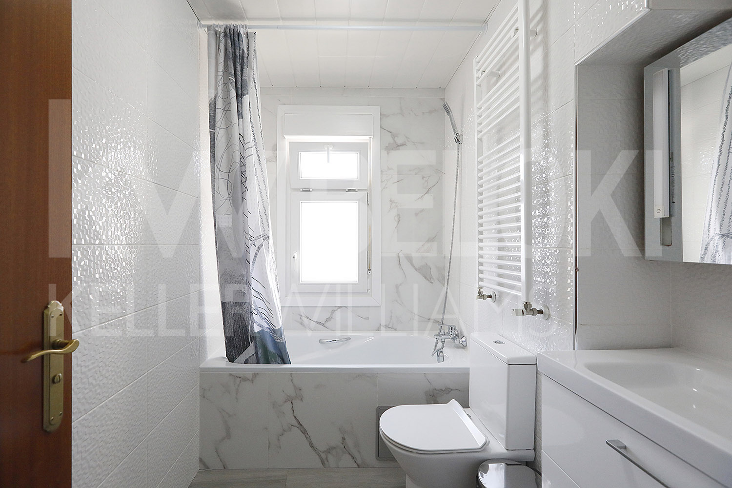 El baño completo, en muy buen estado, incluye bañera, aportando comodidad y funcionalidad a la vivienda. En conjunto, esta propiedad destaca por sus estancias exteriores, su luminosidad y su estado de conservación, características que la convierten en una oportunidad única en Irun.