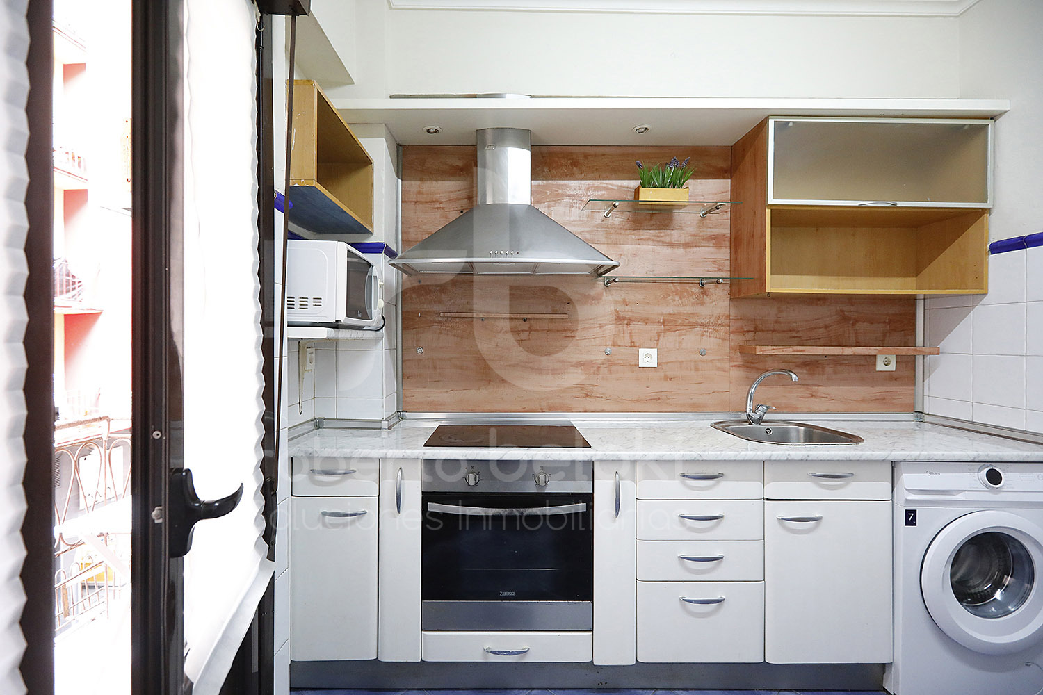 Desde el hall de entrada se accede de forma natural al salón, una estancia bien dimensionada y funcional. A continuación, la vivienda dispone de una cocina independiente, exterior y totalmente equipada, con salida a balcón, un espacio que aporta luz y ventilación y que resulta especialmente práctico en el uso diario.